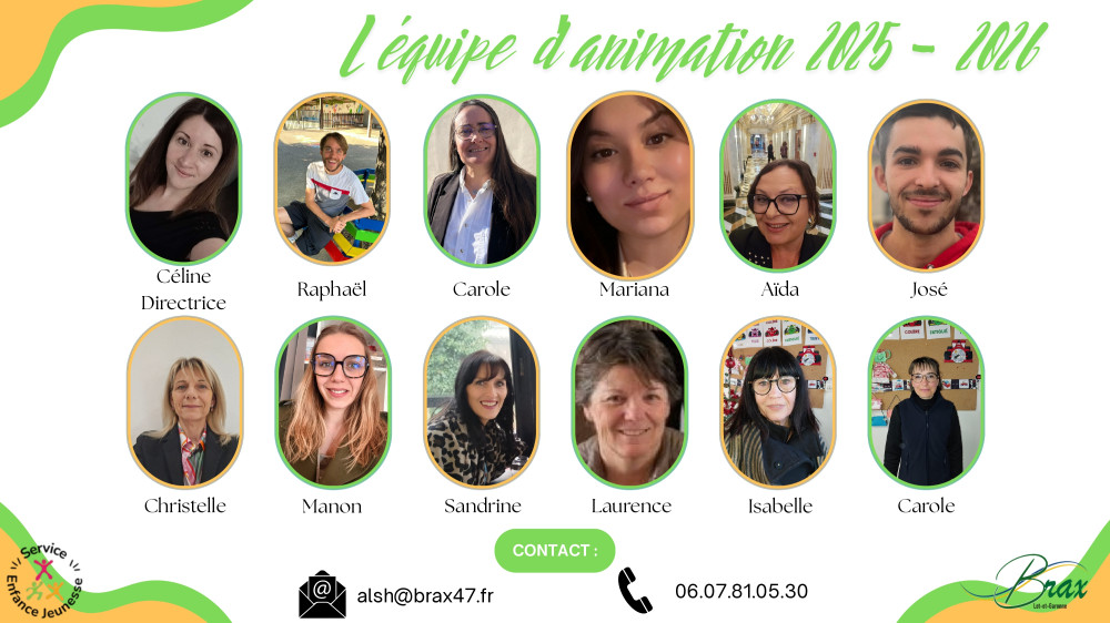 Le Service Enfance Jeunesse vous retrouve dans les locaux de l’école de Brax dès le lundi 1 septembre 2025. Vos enfants seront accueillis par Céline BRIZARD (Directrice du service Enfance et Jeunesse) et son équipe d’animation.